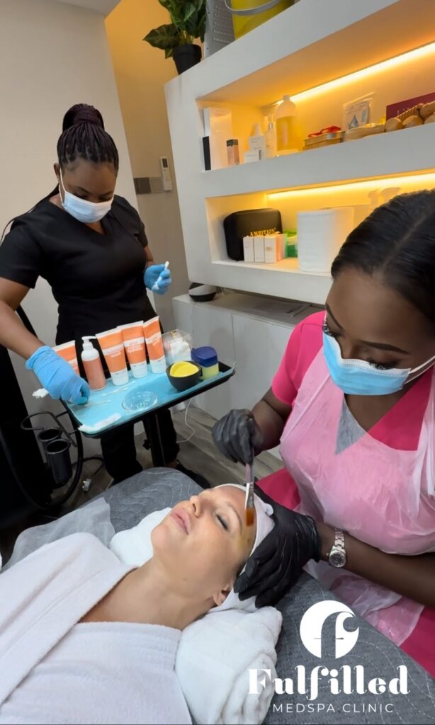 Our passion in skincare at Fulfilled aesthetics is to not only give you the best experience however the best treatment. We will follow you on your skin care journey for maximum results. For newbies or clients who have been using harsh products over a period, we strongly advise clients to start with a gentle chemical peel before up grading clients to a stronger peel. With our upgrade peel depending on your skin assessment on the day of your appointment we will possibly start a twostep approach which includes Beta 20% and possibly TCA if needed. We have many other treatments in out upgrade to gentle chemical peel, however we will tailor what suits you on the day of your appointment and provide the best treatment for you.
